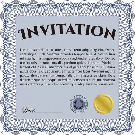 Retro invitation template. With complex linear background. Border, frame. Artistry design.