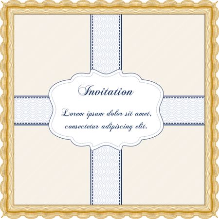 Retro invitation template. With complex linear background. Border, frame. Artistry design.