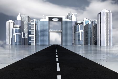 road leading to a business city - made in 3d