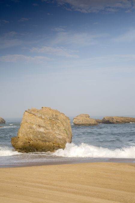 Rock and Sufer on Beach; Biarritz; France