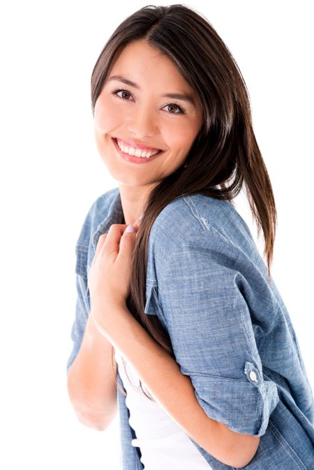 Romantic loving woman - isolated over a white background