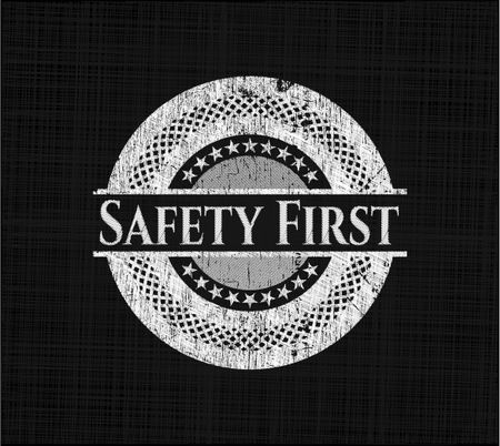 Safety First chalkboard emblem on black board