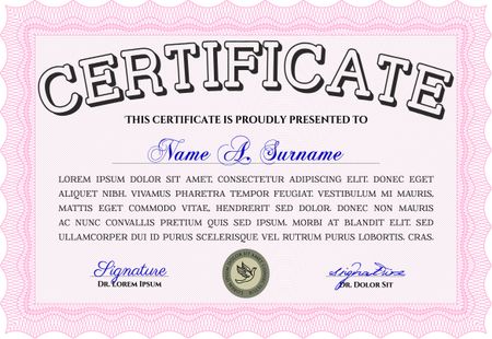 Sample Certificate. Artistry design. Vector pattern that is used in money and certificate. With quality background. Pink color.