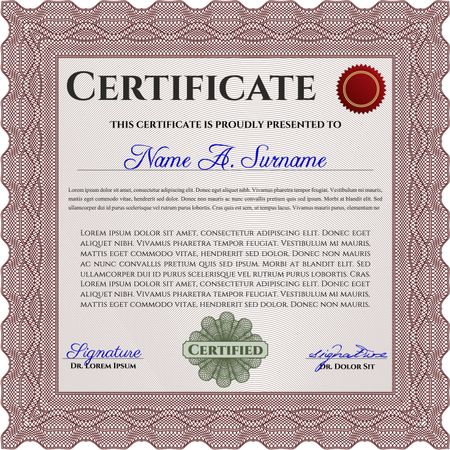 Sample Certificate. Artistry design. Vector pattern that is used in money and certificate. With quality background. Red color.