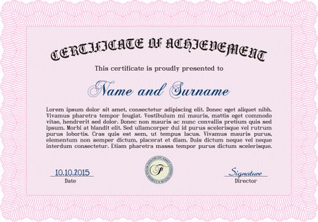 Sample Certificate. Complex design. With complex linear background. Money style.