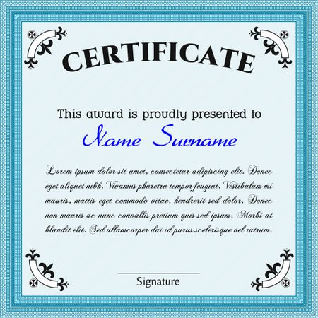 Sample certificate or diploma. Border, frame.Retro design. With complex background.