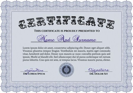 Sample certificate or diploma. Border, frame.Retro design. With complex background.