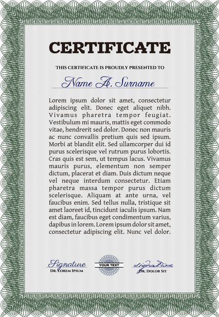 Sample certificate or diploma. Printer friendly. Beauty design. Detailed.