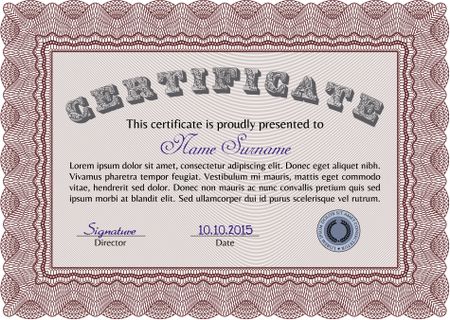 Sample certificate or diploma. Printer friendly. Money style.Good design.