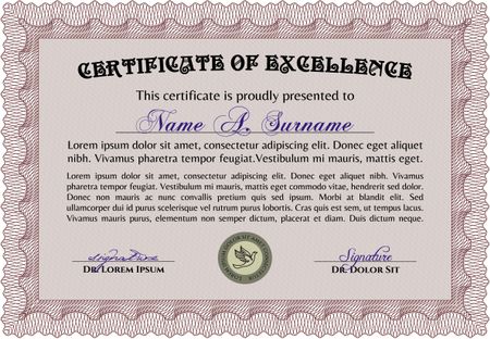 Sample certificate or diploma. Sophisticated design. Detailed.With complex linear background.