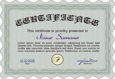 Sample Certificate. Elegant design. Vector pattern that is used in currency and diplomas.With complex linear background.