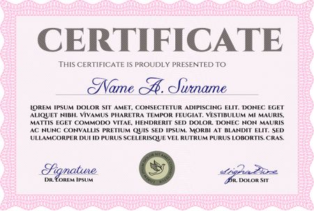 Sample Certificate. Excellent design. Frame certificate template Vector.Easy to print.