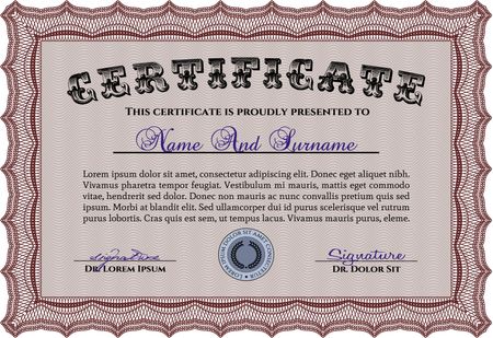 Sample Certificate. With linear background. Modern design. Frame certificate template Vector. Red color.