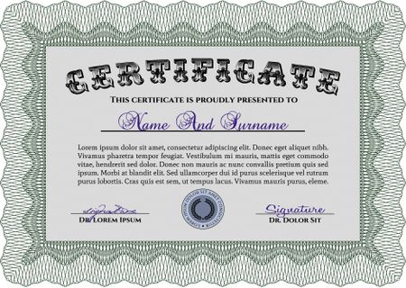 Sample Certificate. Printer friendly. Retro design. Border, frame.
