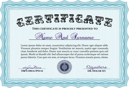 Sample Certificate. Printer friendly. Retro design. Border, frame.