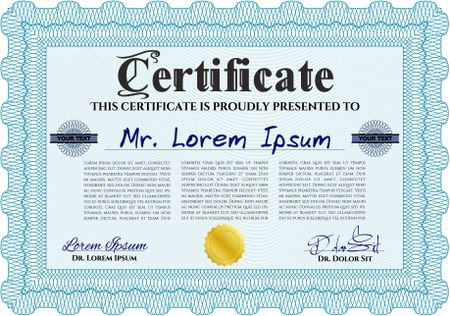Sample Certificate. With quality background. Vector pattern that is used in money and certificate. Artistry design. Light blue color.