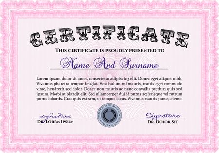 Sample Certificate. Retro design. With great quality guilloche pattern. Money style.
