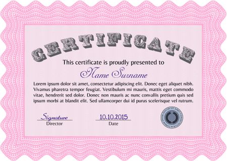 Sample Certificate. Superior design. Detailed.With complex linear background.