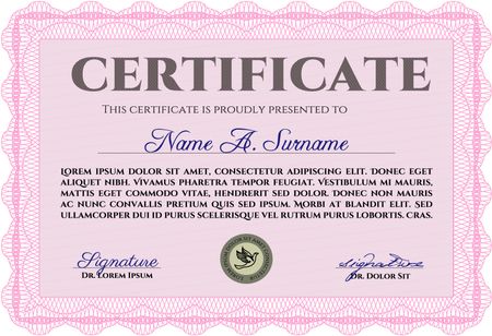 Sample Certificate. Superior design. With guilloche pattern and background. Customizable, Easy to edit and change colors.