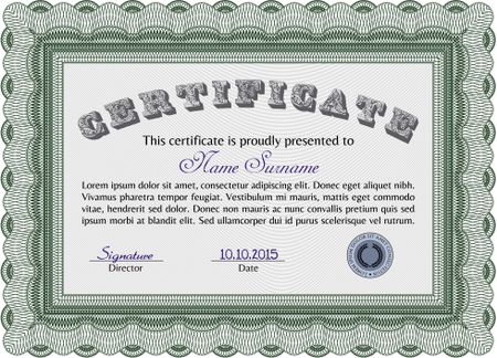 Sample Certificate. Vector illustration.With complex linear background. Superior design.