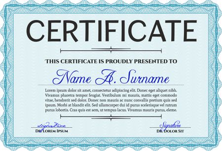 Sample Certificate. Vector pattern that is used in money and certificate. Artistry design. With quality background. Light blue color.