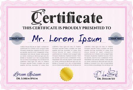 Sample Diploma. Elegant design. Frame certificate template Vector. With linear background. Pink color.