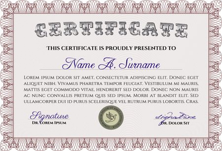 Sample Diploma. Frame certificate template Vector.With complex linear background. Nice design.
