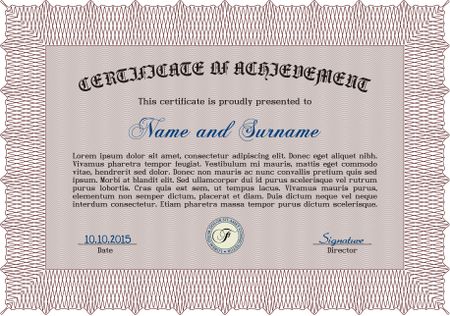 Sample Diploma. Lovely design. Frame certificate template Vector.With complex linear background.