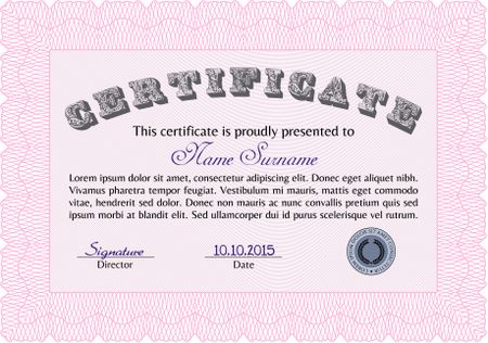 Sample Diploma. Retro design. With complex linear background. Money style.