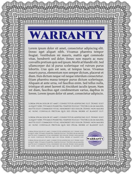 Sample Warranty. Artistry design. Border, frame. With complex linear background.
