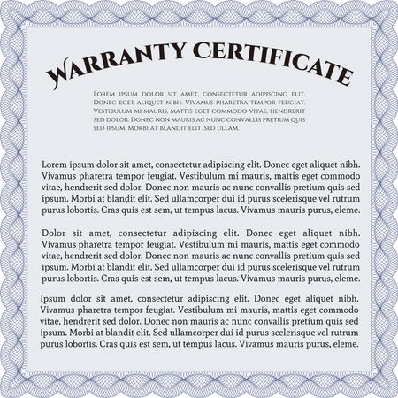 Sample Warranty. Artistry design. With complex linear background. Border, frame.