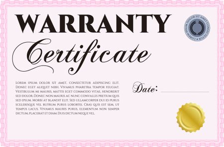Sample Warranty certificate. Complex frame design. It includes background. Very Detailed.
