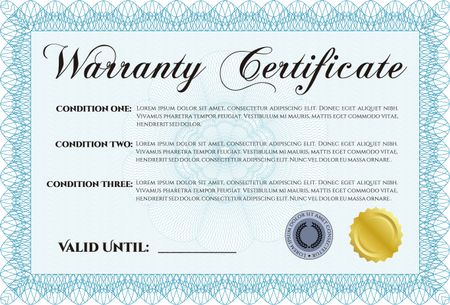 Sample Warranty certificate. Complex frame. Retro design. With sample text.