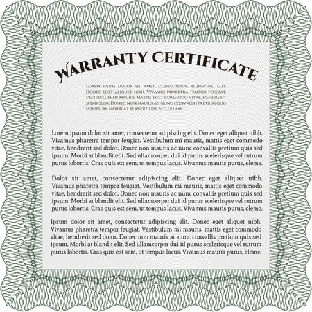 Sample Warranty certificate. With complex linear background. Vector illustration. Excellent complex design.