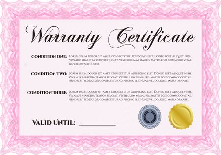 Sample Warranty certificate. With complex linear background. Artistry design. Vector illustration.