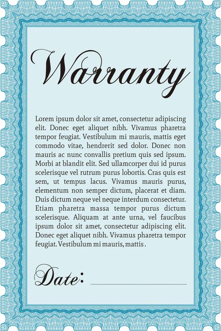 Sample Warranty certificate. With complex linear background. Artistry design. Vector illustration.