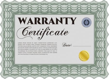 Sample Warranty certificate. Easy to print. Complex border design. Vector illustration.