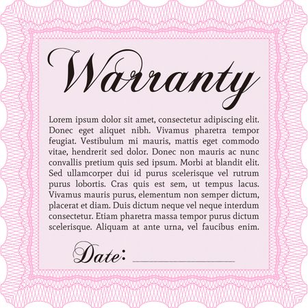 Sample Warranty certificate. With guilloche pattern and background. Excellent complex design. Vector illustration.