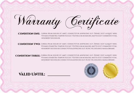 Sample Warranty certificate. With guilloche pattern and background. Excellent complex design. Vector illustration.