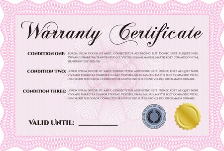 Sample Warranty certificate. It includes background. Vector illustration. Complex frame design.