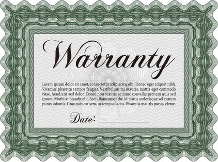 Sample Warranty certificate. Retro design. Complex design. With sample text.
