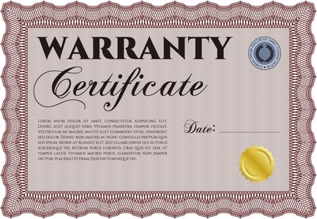Sample Warranty certificate template. With complex background. Retro design. Complex frame design.