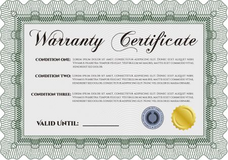 Sample Warranty certificate template. With complex background. Very Detailed. Complex frame.
