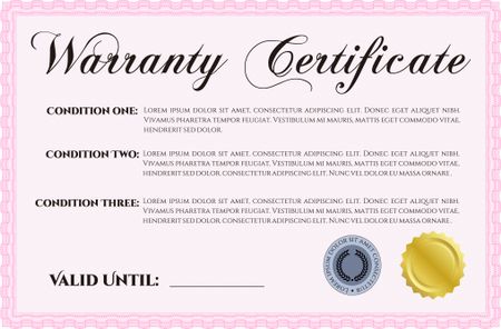 Sample Warranty certificate template. Complex border. Retro design. It includes background.
