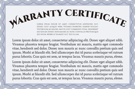 Sample Warranty certificate template. Complex frame. With sample text. Very Detailed.