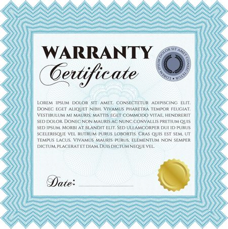 Sample Warranty certificate template. Elegant design. Vector illustration. With guilloche pattern.