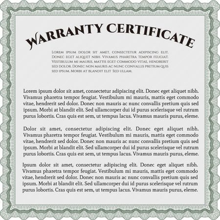 Sample Warranty certificate template. Vector illustration. With guilloche pattern and background. Elegant design.