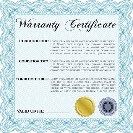 Sample Warranty certificate template. Very Detailed. With sample text. With complex background.