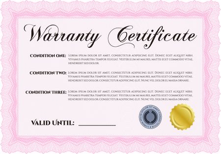 Sample Warranty certificate. Vector illustration. Excellent complex design. With complex linear background.