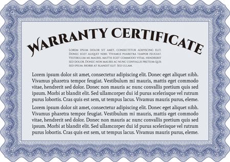 Sample Warranty certificate. Very Customizable. With sample text. Complex design.